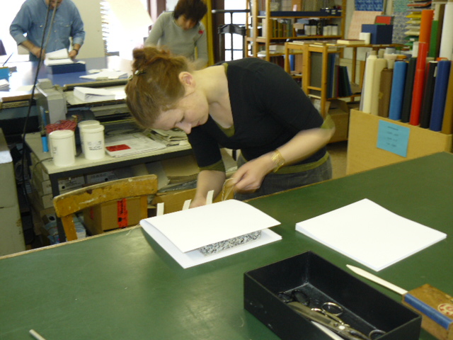 uns die Techniken des Buchbindens und den Gebrauch der Maschinen auf sehr